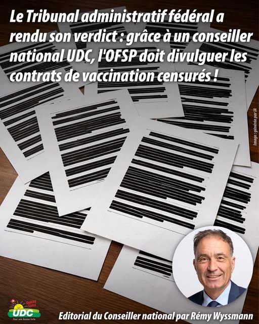 Le Tribunal administratif fédéral a rendu aujourd’hui son verdict : les contrats conclus entre l’OFSP et les fabricants pour l’achat de vaccins contre le Covid-19 doivent être divulgués dans leur intégralité. Combien l’OFSP a-t-il payé pour les vaccins contre le Covid ? Les fabricants sont-ils responsables des problèmes causés par les vaccins ? Jusqu’à présent, ces informations étaient caviardées dans les contrats fédéraux. Les contribuables suisses devaient payer, mais n’avaient pas le droit de savoir.