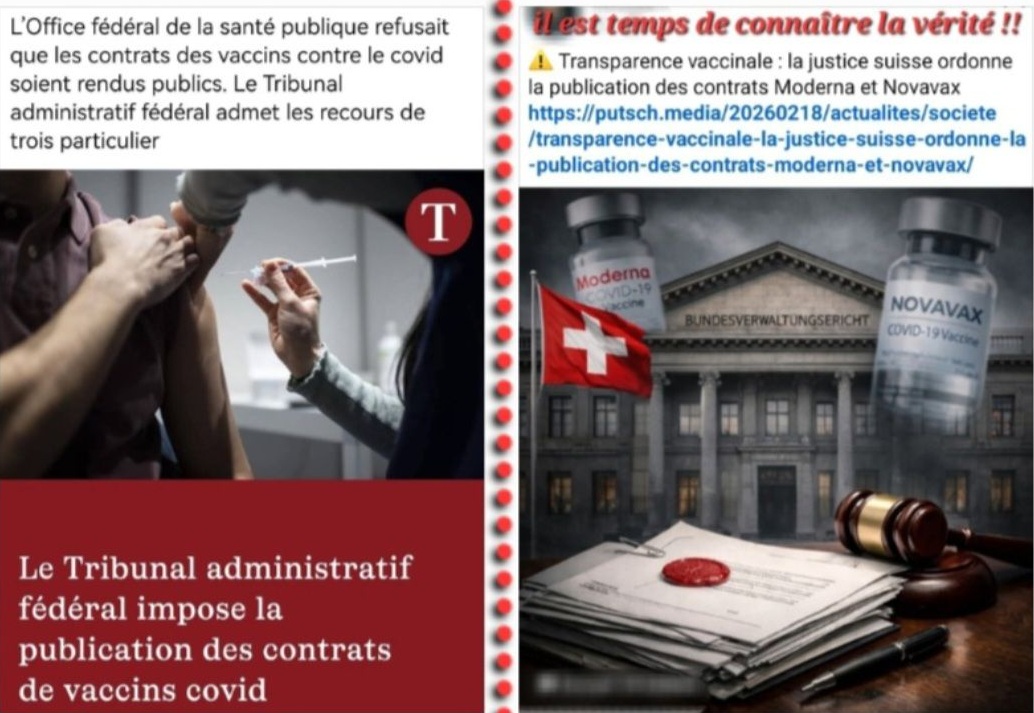 Suisse et vaccination Covid: Le tribunal fédéral oblige la divulgation des contrats de vaccination censurés.